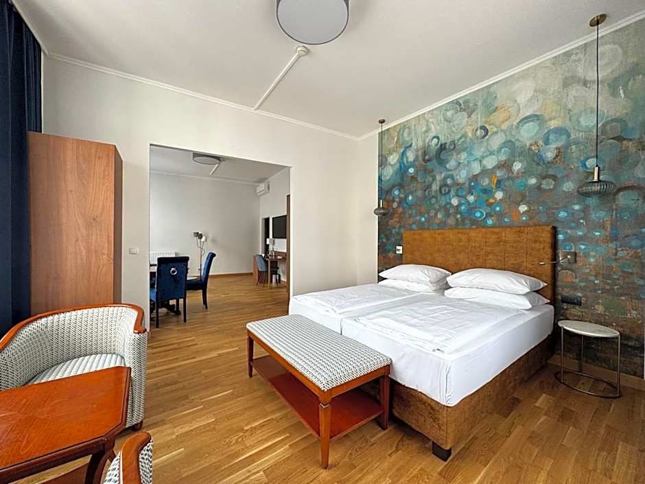 These spacious apartments have separate living and bedroom areas, as well as a small kitchenette with a fridge and an espresso machine, individually regulated air conditioning in the summer months, free WLAN and a safe.